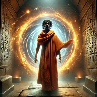 High atop the Great Pyramid, where ancient stone touched the eternal sky, a young monk named Akir sat in deep meditation. His saffron robes rustled in the gentle breeze as the night sky shimmered with stars. From his earliest memories, Akir had felt a strange pull toward the Akashic Records—the vast, cosmic repository of all knowledge, past and future. Tonight, he sensed that the balance of the universe was teetering, and the Akasha itself whispered warnings to those who could hear.